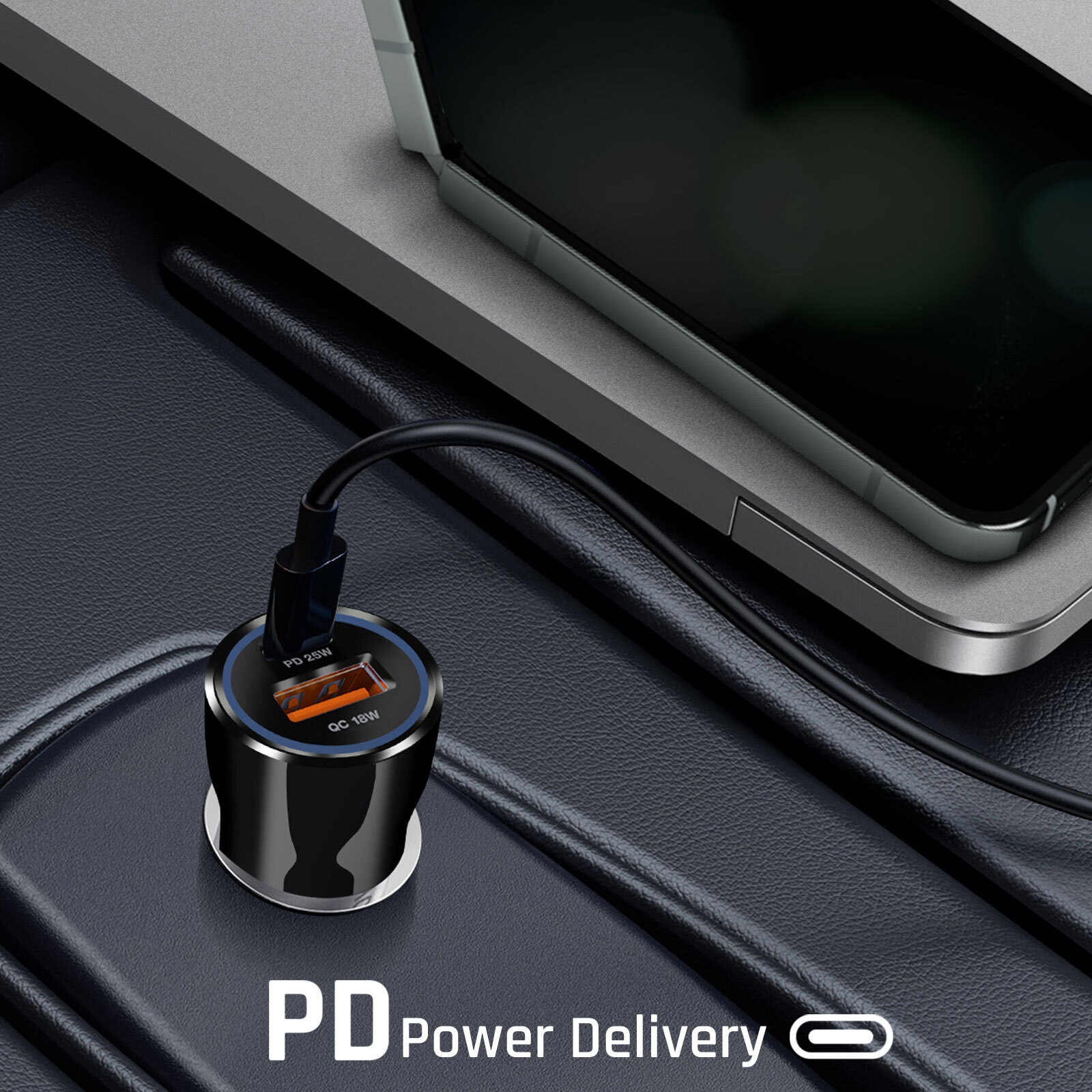 Cargador de coche de Blue Star. Incluye un puerto USB-C Power Delivery de 25 W y un puerto USB Quick Charge de 18 W. Ajusta la potencia de carga a las necesidades de tu dispositivo. Diseño compacto y ordenado. Indicador LED integrado. Fácil de usar.Características y Puntos fuertes: El cargador de coche negro de Blue Star combina rendimiento y elegancia para optimizar tus viajesEquipado con un puerto USB-C Power Delivery de 25 W y un puerto USB Quick Charge de 18 W para cargar simultáneamente 2 dispositivos.Protección integrada contra sobretensiones y cortocircuitos para garantizar una carga fiable.Ajusta automáticamente la potencia de carga a las necesidades específicas del dispositivo conectado.
