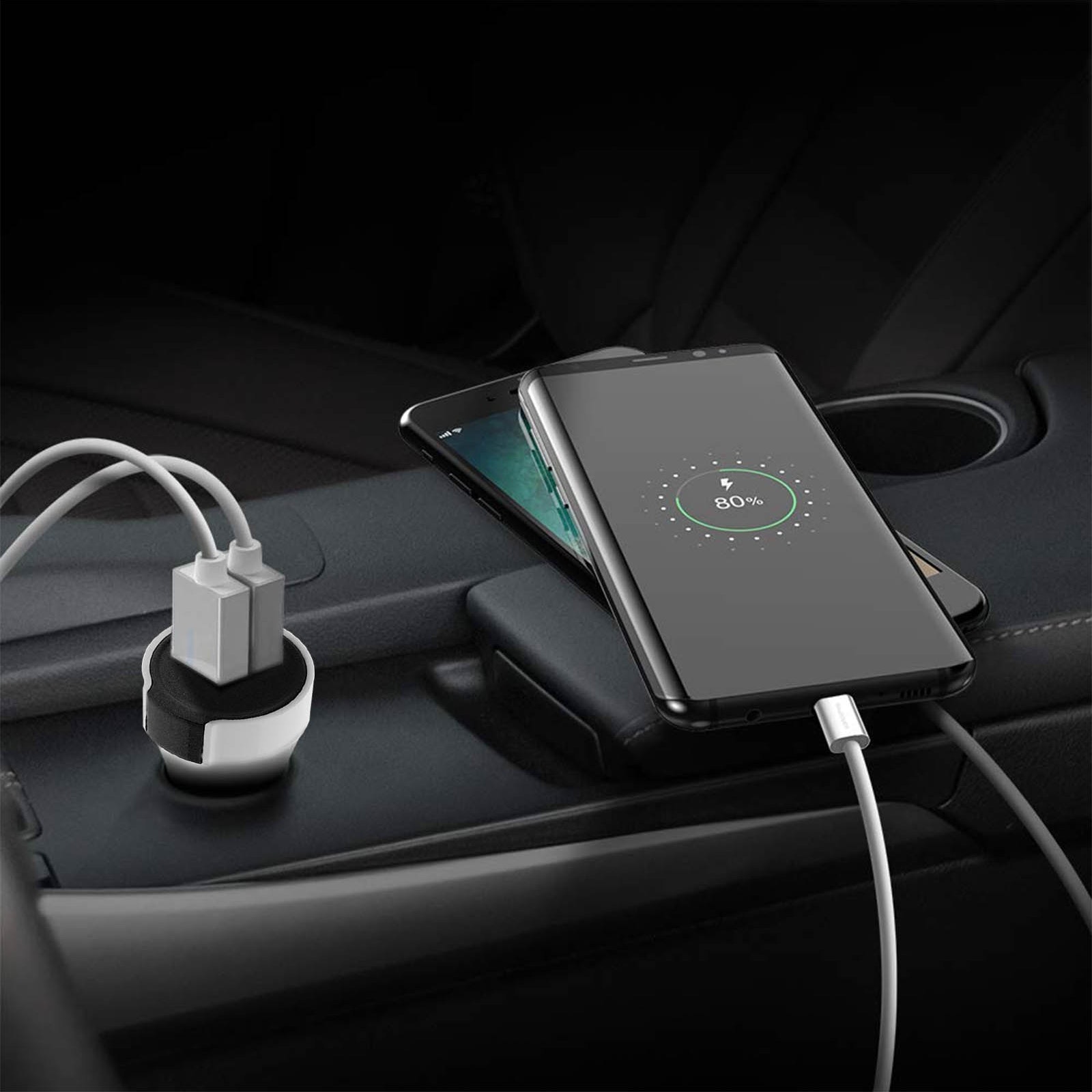 Cargador de mechero para recargar tu dispositivo durante tus desplazamientos. Con 2 puertos USB, te permite conectar 2 periféricos a la vez. Cuenta con una potencia de salida de 2.4A que garantiza una recarga rápida. Cable Lightning de 1 m incluido.