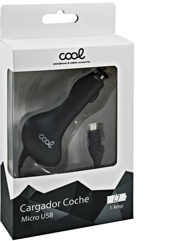 Cargador de Coche Micro USB COOL.Cargador Compacto de 1Amp.El cargador de nuestra marca COOL es el producto ideal para gente que quiere cargar sus dispositivos moviles mientran va en su coche. El cargador es compacto, potente, y convierte de manera conveniente la potencia desde tu vehiculo para cargar los dispositivos micro USB.Simplemente introduce el cargador en el espacio para DC de tu vehiculo y enchufa tus dispositivos con su cable micro USB.Especificaciones técnicasVoltaje: 5 V 1APotencia salida: 1 Amperio.Mayor potencia de salida supone un menor tiempo de carga.DC 12-24VVálido para todas las marcas con conexión micro-usb: Alcatel, Blackberry, BQ, HTC,Huawei, Sony, Samsung, Motorola, Nokia, Wiko...Presentación en blister Cool Accesorios. Tipo de conexión: Micro USB
