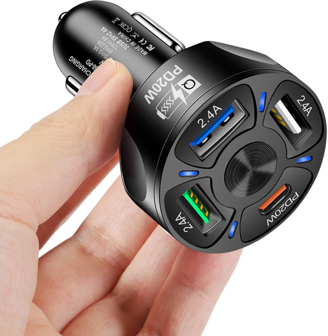 Este cargador de coche Quickcharge 3.0 negro le permite cargar hasta 4 dispositivos simultáneamente en su vehículo. Ofrece una potencia total de 32 W, para que puedas recargar tus dispositivos rápidamente. Tiene 3 salidas USB de 2,4 A y una salida Power Delivery de 20 W para un cable de tipo C. Certificado conforme a las normas europeas, el cargador reduce el riesgo de sobrecalentamiento de los dispositivos.Características y Puntos fuertes: Este cargador de coche Quickcharge 3.0 negro le permite cargar hasta 4 dispositivos simultáneamente en su vehículo.Con una potencia total de 32 W, te permite recargar tus dispositivos rápidamente.Tiene 3 salidas USB de 2,4 A y una salida Power Delivery de 20 W para un cable de tipo C.Certificado según las normas europeas, el cargador reduce el riesgo de sobrecalentamiento del equipo