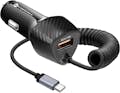 Cargador USB para coche Forcell de 38 W. Puerto USB Quick Charge 3.0 de 18W + cable integrado USB-C Power Delivery de 20W para cargar rápidamente 2 dispositivos al mismo tiempo. Carga segura. Acabado en carbono para un toque elegante. Diseño compacto. • Características y Puntos fuertes: Tu cargador de coche con acabado de carbono de Forcell para recargar tus baterías mientras viajas. Totalmente compatible con tus dispositivos USB-C. Carga tu dispositivo a toda velocidad gracias a su potencia total de 38W. Incorpora las tecnologías Power Delivery y Quick Charge 3.0 para una carga aún más rápida