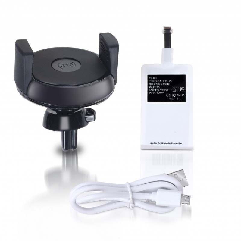 Imperii Electronics Cargador wireless + receptor Iphone 7 PLUS con Soporte rejilla coche negro