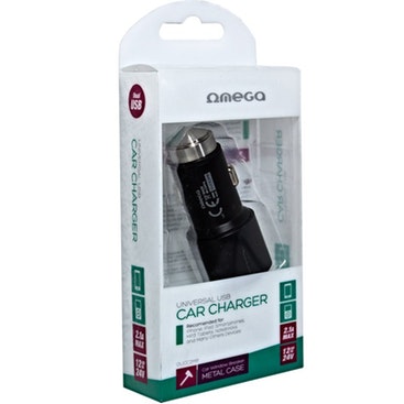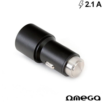Omega Cargador Coche Universal Doble Entrada Usb Metalico 2 x usb 2.1 Amp Negro