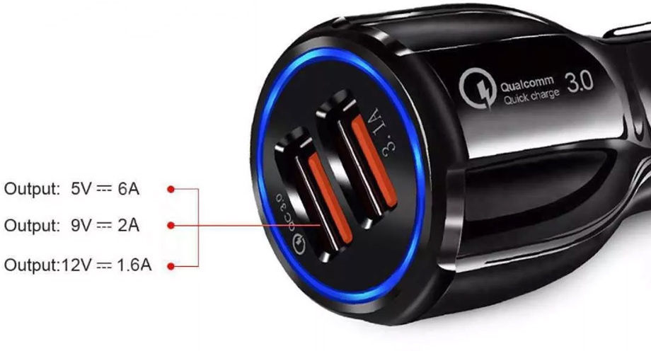 -Carga rápida. Hasta un 80% de carga en tus dispositivos en sólo 35 minutos. Una velocidad de carga 4 veces superior a la estándar. Incorpora una bonita luz LED azul que se activa al conectarlo..-Este cargador de coche es compatible con todos los coches del mercado. Es Qualcomn 3.0 y dispone de carga rápida 3.1A, gracias a su doble puerto USB..-Funciona mediante el mechero, utilizando el sistema eléctrico del coche para cargar tus dispositivos. Cuenta con un bonito diseño negro, minimalista y moderno..-Chip incorporado para asegurar la correcta carga de todos tus dispositivos y evitar sobrecalentamientos..-Muy práctico para cargar todo tipo de dipositivos como moviles, camaras, consolas, etc. .-Dispone de dos salidas rápidas de 3.1A, por lo que podrás cargar dos dispositivos de forma simultánea sin ningún problema. ¡Perfecto para tus viajes!