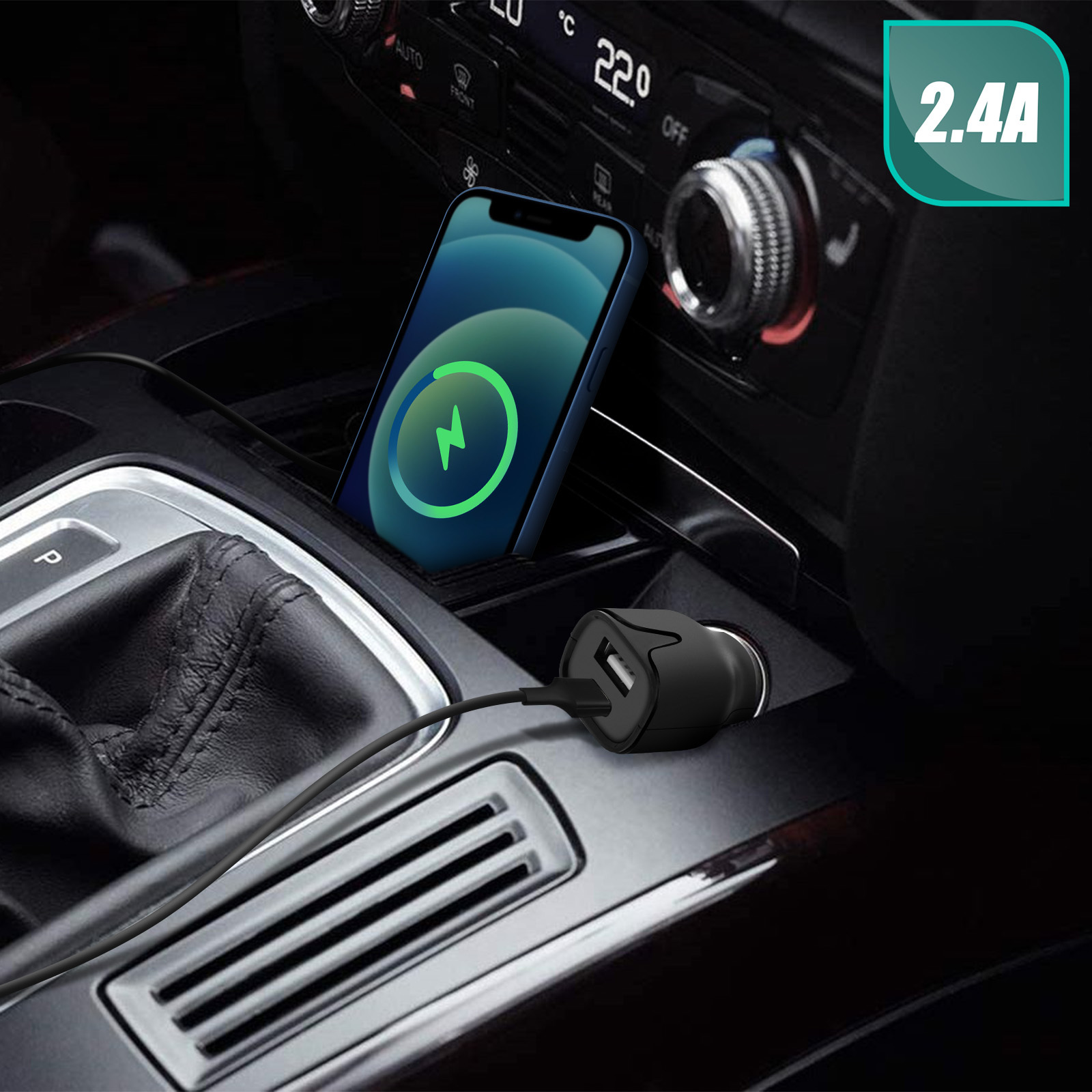 SETTY Cargador de mechero Carga completa 2.4A USB / USB-