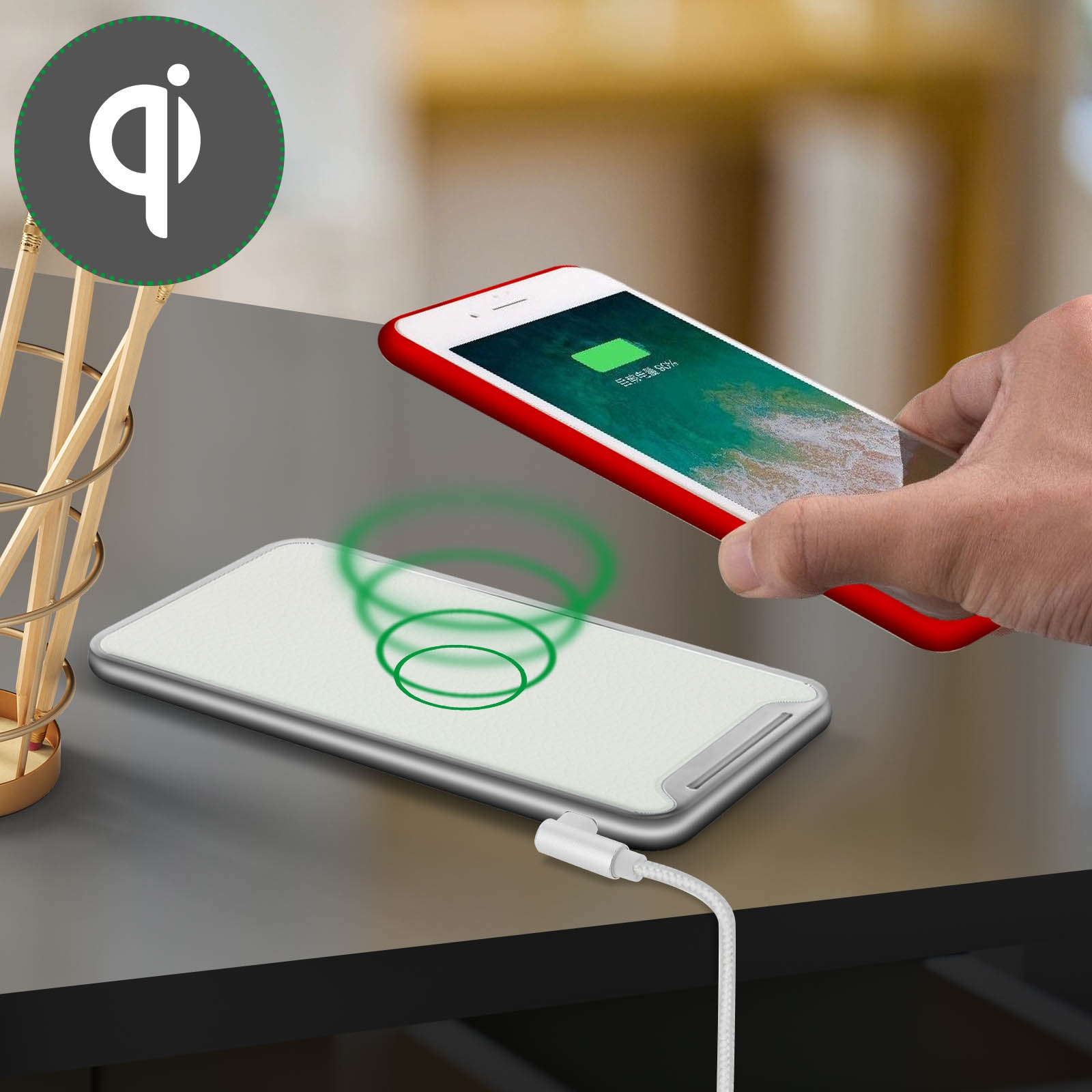 Cargador por inducción Qi 4Smarts. Potencia de 10W para una carga rápida y segura. Doble bobina transmisora. Soporte de escritorio con 3 modos de orientación: horizontal, vertical, plano. Cable USB-C de 1 m incluido.