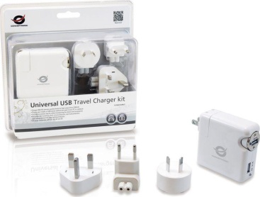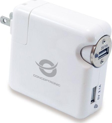 Conceptronic CUSBCHARKIT. Tipo de cargador: Auto, Interior, Alimentación: Corriente alterna, Encendedor de cigarrillos, Compatibilidad del cargador: Cámara digital, Portátil, PDA, Smartphone, Tablet. Voltaje de entrada: 100 - 240 V, Voltaje de salida máximo: 5 V. Cantidad de puertos USB 2.0: 2. Color del producto: Blanco