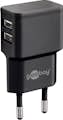Goobay 44951. Tipo de cargador: Interior, Alimentación: Corriente alterna, Compatibilidad del cargador: Teléfono móvil, Smartphone. Voltaje de entrada: 100 - 240 V, Voltaje de salida máximo: 5 V, Corriente de salida de adaptador AC: 2,4 A. Cantidad de puertos USB 2.0: 2. Color del producto: Negro