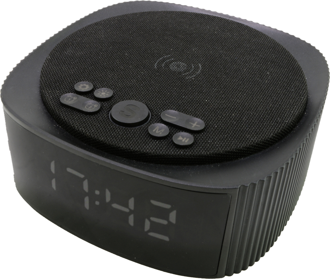 El reloj despertador Alarm Clock 3 incorpora una base de carga inalámbrica rápida compatible con Android e iOs. Además, tiene una radio FM y altavoz bluetooth. Es la solución de carga perfecta para cualquier mesita de noche..Reloj despertador.Con su diseño moderno y minimalista, este reloj despertador con cargador inalámbrico y luz de noche es la solución de carga perfecta para cualquier espacio..Modo snooze.Permite programar 2 alarmas y activar el modo snooze para ue vuelvan a sonar tras 5 minutos..Luz de noche con 3 intensidades.El despertador incorpora una tenue luz de noche con 3 intensidades para crear distintos ambientes..Carga inalámbrica rápida para Apple y Android.El despertador Alarm Clock 2 cuenta con un cargador inalámbrico de carga rápida inalámbrica (Apple y Android). La carga inalámbrica rápida carga los dispositivos hasta 1,4 veces más rápido que una carga inalámbrica estándar**..Al cargar dispositivos compatibles con la carga inalámbrica Qi que no soportan la carga rápida, el cargador adaptará la carga a la velocidad estándar (5W)..Compatible con Qi.El cargador inalámbrico es compatible con todos los dispositivos habilitados para Qi. Es posible verificar que el terminal está habilitado con la tecnología inalámbrica de carga rápida en el manual de usuario o consultando al proveedor..Puerto USB tipo A.Gracias a su puerto de salida USB tipo A, permite cargar también aquellos dispositivos móviles que no cuenten con carga inalámbrica..* Si el smartphone es iPhone 8 o posterior, se debe tener en cuenta que la carga rápida será de 7.5W, ya que esta es la potencia de carga rápida máxima permitida por el dispositivo..** La función de carga rápida necesita un cargador incluyendo la tecnología QuickCharge 2.0 o superior (no incluido) y sólo funciona con dispositivos compatibles con la carga rápida Qi como los iPhone 8/8 Plus/X/11 y Samsung Galaxy Note8 /S9+/S9/S8/S8 +/S7/S7 Edge/S6 Edge Plus/Note 5..Características principales. Batería autónoma para llevarlo como a altavoz a cualquier sitio.. Reloj despertador con cargador inalámbrico de carga rápida y luz de noche. Indicadores LED de hora y minutos, con 3 niveles de intensidad posible. Alarma fácilmente configurable, con modo snooze. Luz de noche con 3 intensidades distintas. 2 potencias de carga: una rápida de 7,5W o 10W para dispositivos compatibles con la carga rápida Qi y una estándar de 5W. Salida USB tipo A para cargar aquellos dispositivos no habilitados con carga inalámbrica. Compatible con los dispositivos Apple y Android. Diseño moderno y minimalista, y tamaño perfecto para cualquier mesita de noche. Compatible con cualquier teléfono inteligente y dispositivo móvil habilitados para Qi o dispositivos equipados con una batería compatible con Qi.Especificaciones técnicas. Reloj despertador con carga inalámbrica Fast Charge y luz de noche. Parámetros de entrada: 5V-2A, 9V-1.67A. Parámetros de salida USB: 5V/1A (máximo). Potencia de salida ina