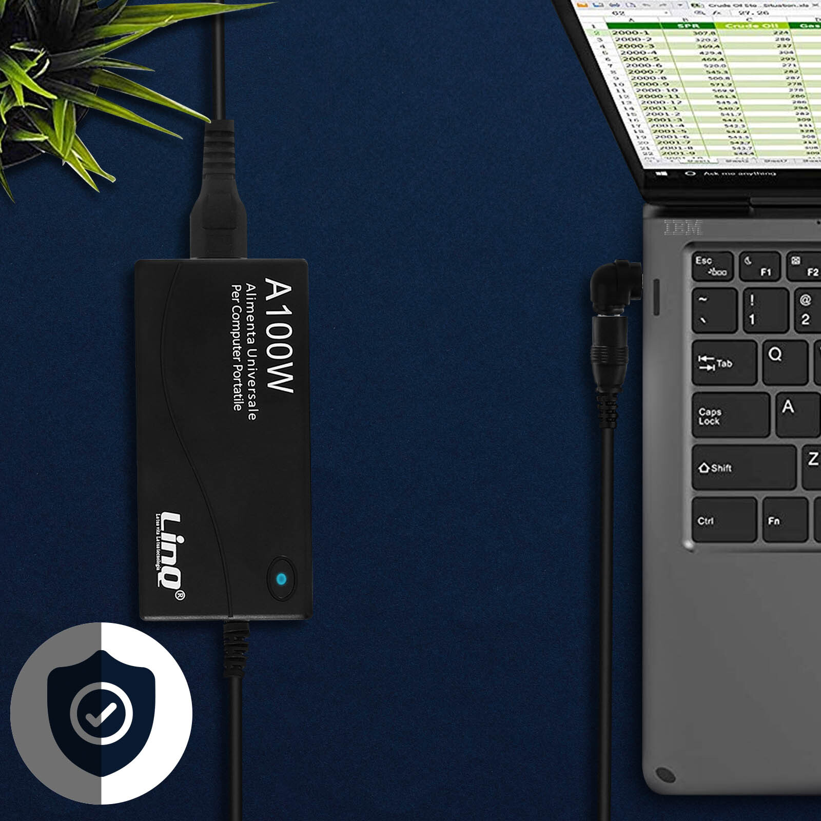 LinQ Cargador para portátil de 100W con puerto USB y 8 cabezales intercambiables