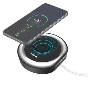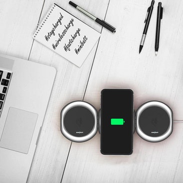 Este cargador por inducción Qi Modular de MiniBatt facilita la carga de tus dispositivos. Equipado con un sistema de conexión magnética que permite acoplar otros 2 cargadores Qi para recargar hasta 3 dispositivos al mismo tiempo.