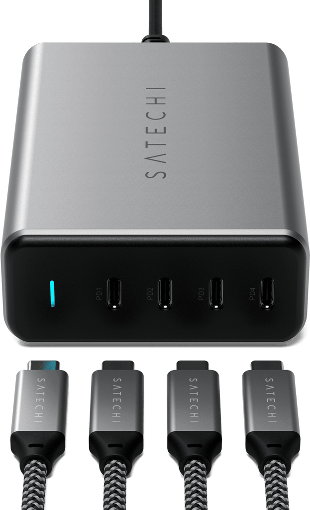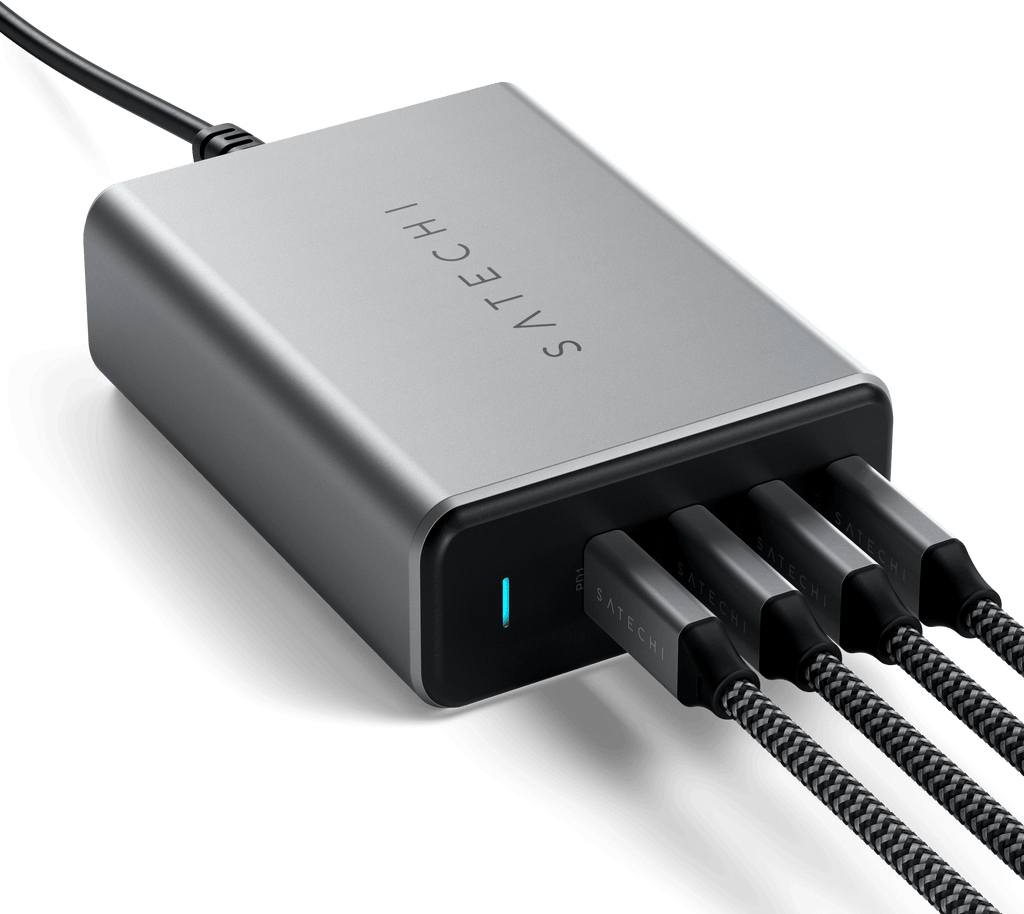 Satechi ST-UC165GM-EU. Tipo de cargador: Interior, Alimentación: Corriente alterna, Compatibilidad del cargador: Universal. Voltaje de entrada: 100 - 240 V. Número de puertos USB Tipo C: 4, Carga rápida. Color del producto: Negro, Gris