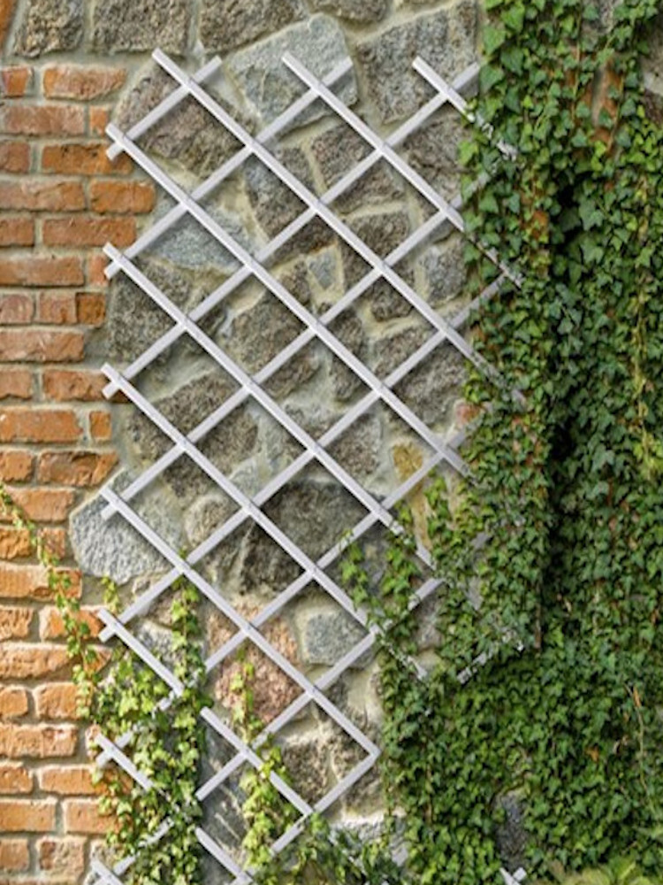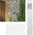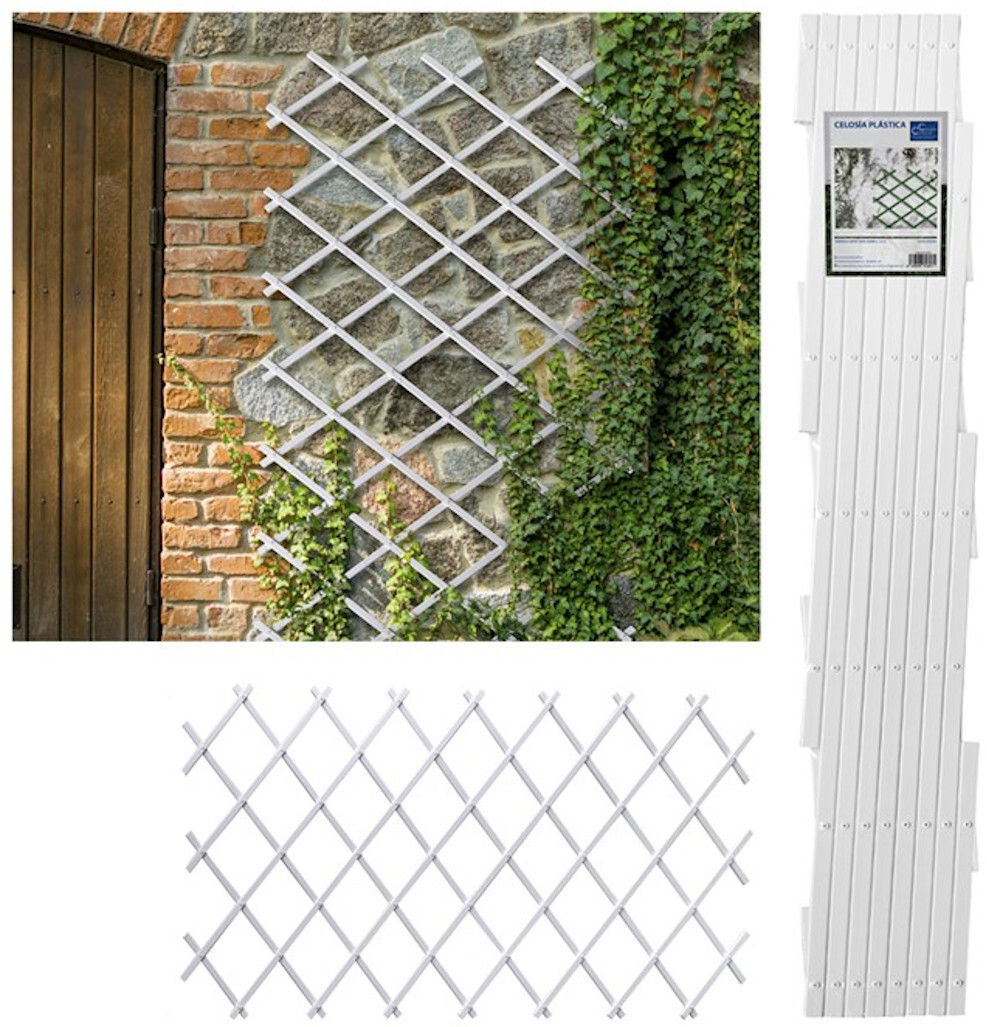 Celosía extensible de plástico, para fijar en un muro y tutorar las plantas. Perfil de los listones: ancho 25 // profundo 7 mm. Duradero y resistente soporta perfectamente las inclemencias del tiempo. LUZ INTERIOR (con la celosía extendida correctamente): alto 23 cm // ancho 19 cm. Clavos incorporados.