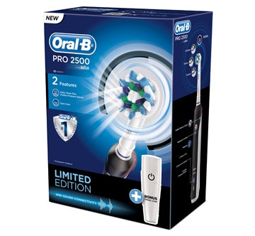Oral-B 2500 + Travel Case, PRO. Fuente de energía: Batería. Número de empuñaduras incluidas: 1 pieza(s), Número de cabezales incluido: 1 pieza(s), Cabezas de cepillo Incluido: CrossAction