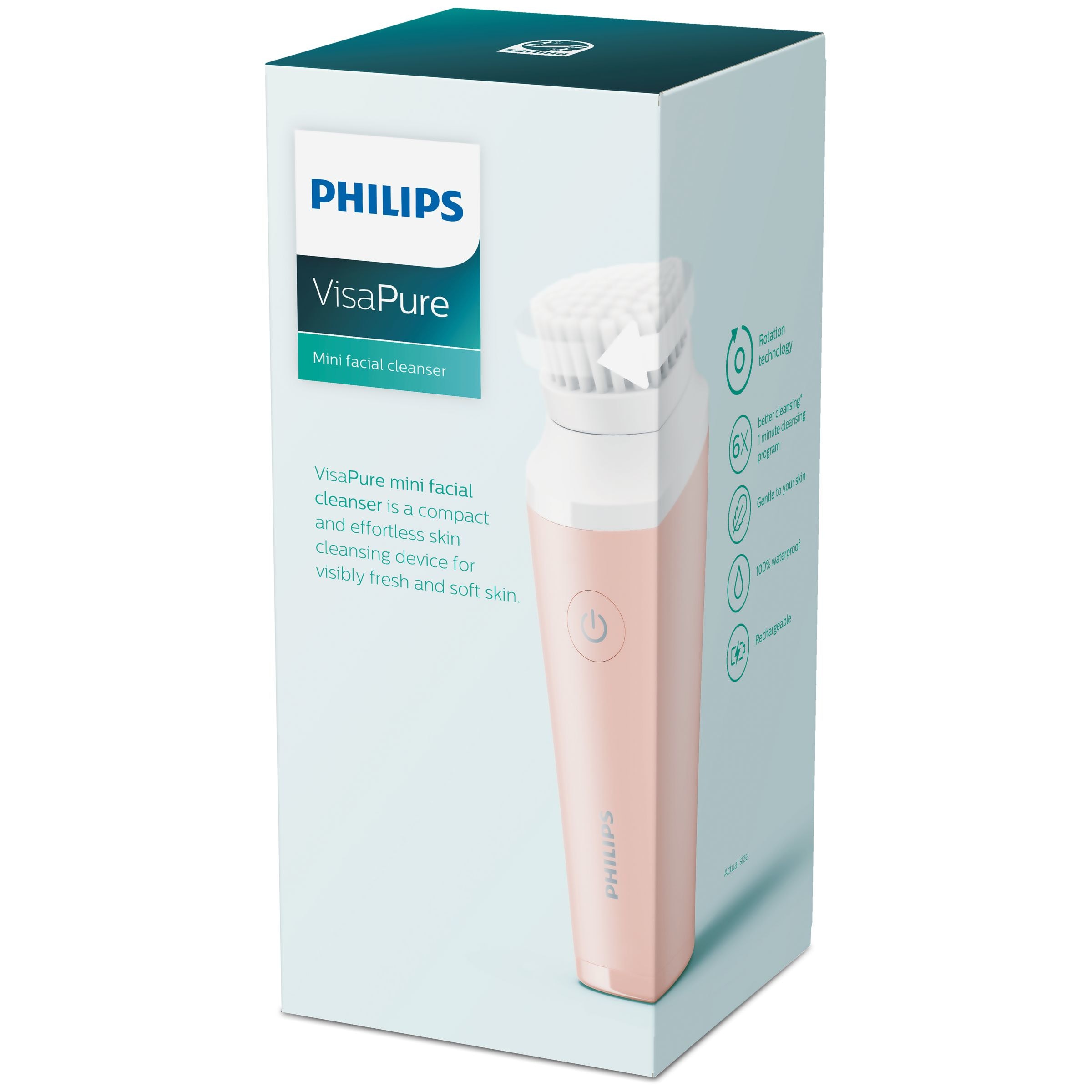 Philips Mini limpiador facial BSC111/06, VisaPure. Tipo: Cepillo giratorio, Adecuado para los tipos de piel: Piel normal. Fuente de energía: Batería, Tipo de batería: Integrado, Voltaje de entrada AC: 100 - 240 V. Aplicación de limpieza para la piel: Cara