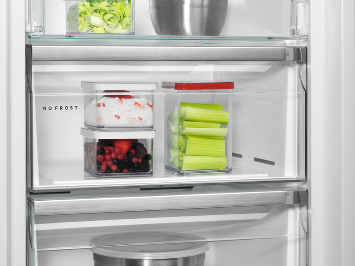 DISEÑO PREMIUM, POR DENTRO Y POR FUERA\nUn estilo con clase en tu cocina, con la línea de diseño. Su diseño sobrio y moderno y sus puertas planas lo convierten en un producto de forma y función.\n\nDEJA DESTACAR TU COCINA CON LA EXCEPCIONAL LÍNEA DE DISEÑO DESIGNLINE\nEl diseño elegante y contemporáneo del frigorífico cobra vida con materiales de calidad, para una cocina moderna y sin fisuras estéticas.\n\nLA MEJOR TECNOLOGÍA A LA HORA DE CONGELAR TUS ALIMENTOS\nNoFrost significa que no hay descongelación. Mantiene el congelador libre de hielo, así que siempre puedes estar seguro de un rendimiento máximo.\n\nILUMINACIÓN LED INTEGRADA EN CADA RINCÓN\nDisfruta de una excelente visibilidad con la iluminación LED integrada en nuestro frigorífico. Produce una luz brillante, que brilla uniformemente en todo el espacio. Y debido a que la tecnología LED es altamente eficiente, utiliza 10 veces menos energía que la iluminación estándar.