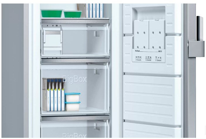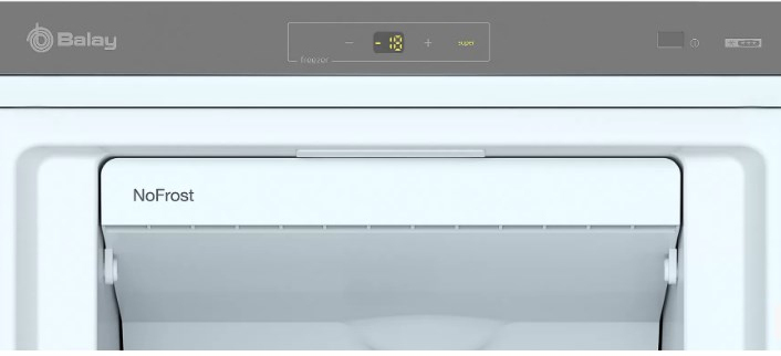 Abre las puertas de la comodidad.\nAbrir la puerta de tu frigorífico, ahora será tan sencillo como un abrir y cerrar de ojos. Porque los tiradores ergonómicos de fácil apertura tienen un diseño que permite abrir las puertas cómodamente, con un sencillo movimiento, incluso cuando las acabamos de cerrar o llevamos muchas cosas en las manos.\n\nMarchando 20 cubitos en cada llenado.\nY allí, donde menos te lo esperas, en el interior de un cajón del congelador, tienes un práctico dispensador integrado, para obtener cubitos de hielo de la forma más cómoda. Con un suave movimiento tendrás el hielo que necesites ¡hasta 20 cubitos en cada llenado! Para mayor comodidad, este depósito ha sido diseñado para evitar derrames y además, puedes retirarlo fácilmente si necesitas más espacio en el interior del cajón.\n\nDiseña tu propio espacio y congela todo lo que quieras.\nPodrás guardar todo tipo de alimentos en tu congelador, de cualquier tamaño y formato, gracias a la flexibilidad que aportan estas bandejas de cristal de seguridad, ubicadas entre los cajones. Si retiras uno o más cajones, puedes usarlas para apoyar copas de helado, cacerolas o cualquier otra cosa que necesite una superficie estable. Y si necesitas aún más espacio, puedes quitar las bandejas y tendrás un compartimento diáfano donde meter barras de pan enteras y otros alimentos de gran tamaño.\n\nCajón BigBox: un gran espacio para congelar.\n¡Se acabaron los problemas de espacio en el congelador! 30 litros de volumen y 26 cm de altura hacen de este cajón tu mejor aliado para congelar grandes tartas, un pavo u otros alimentos de gran tamaño.\n\nCompresor Inverter: la mejor tecnología de frío para tu frigorífico.\nA tu frigorífico Balay le pides que conserve los alimentos en perfecto estado mucho más tiempo. Por eso, equipamos la mayoría de los modelos con la tecnología de alto rendimiento compresor Inverter. Suena muy técnico pero, como te lo explicaría un amigo, consiste en mejorar la eficiencia energética para que ahorres energía y puedas alargar la vida útil del frigorífico.