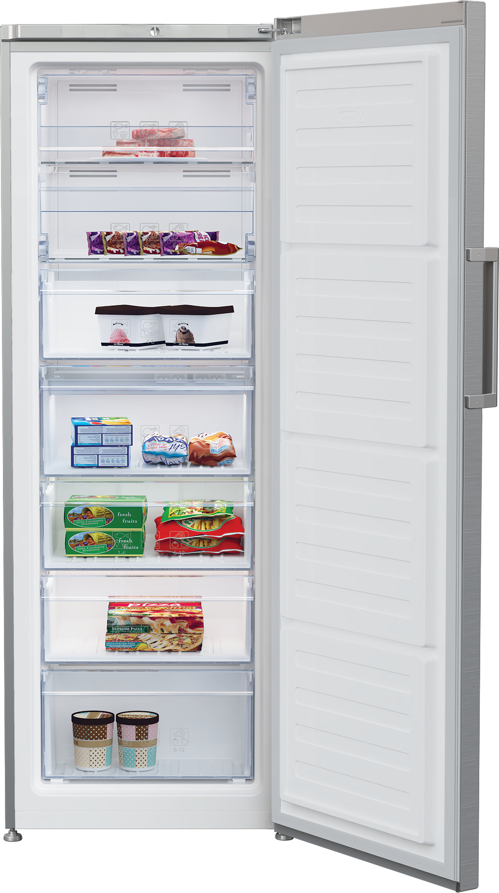 Beko RFNE290L31XBN. Congelador, capacidad neta: 250 L, Clase climática: SN-T, Capacidad de congelación: 16 kg/24h, Tiempo de almacenamiento en caso de fallo de alimentación: 18 h, Nivel de ruido: 39 dB, Índice Star: 4*, Sistema de descongelado. Bisagra para puerta: Derecho. Consumo de energía anual: 307 kWh