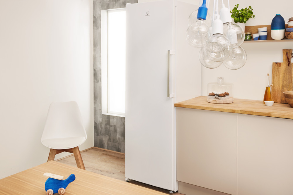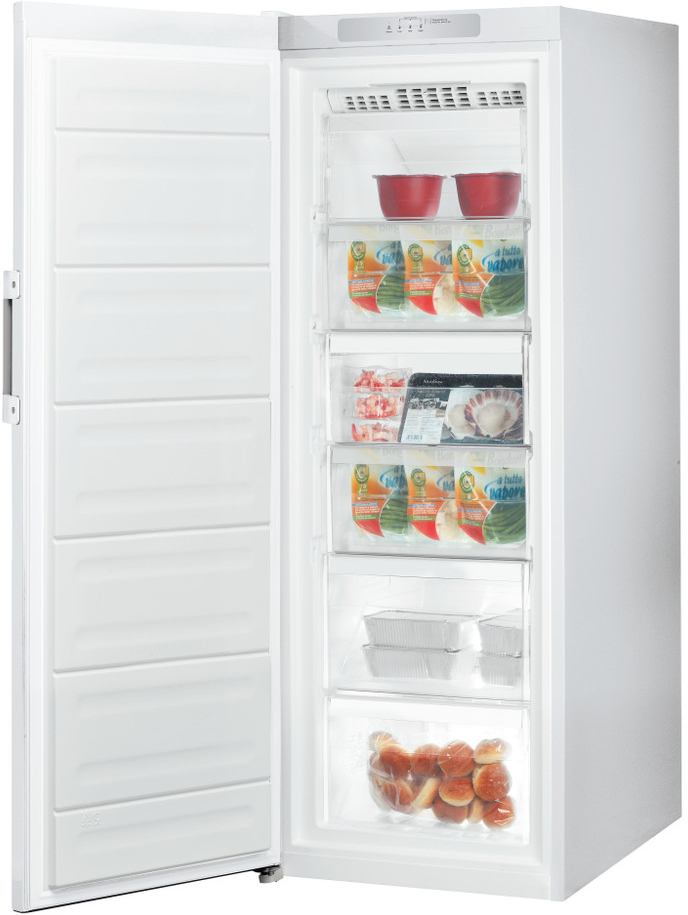 Indesit UI6 F1T W1. Tipo: Vertical. Congelador, capacidad neta: 223 L, Clase climática: SN-T, Capacidad de congelación: 20 kg/24h, Tiempo de almacenamiento en caso de fallo de alimentación: 24 h, Nivel de ruido: 41 dB, Índice Star: 4*, Sistema de descongelado. Bisagra para puerta: Izquierda. Clase de eficiencia de energía: F, Consumo de energía anual: 288 kWh. Color del producto: Blanco