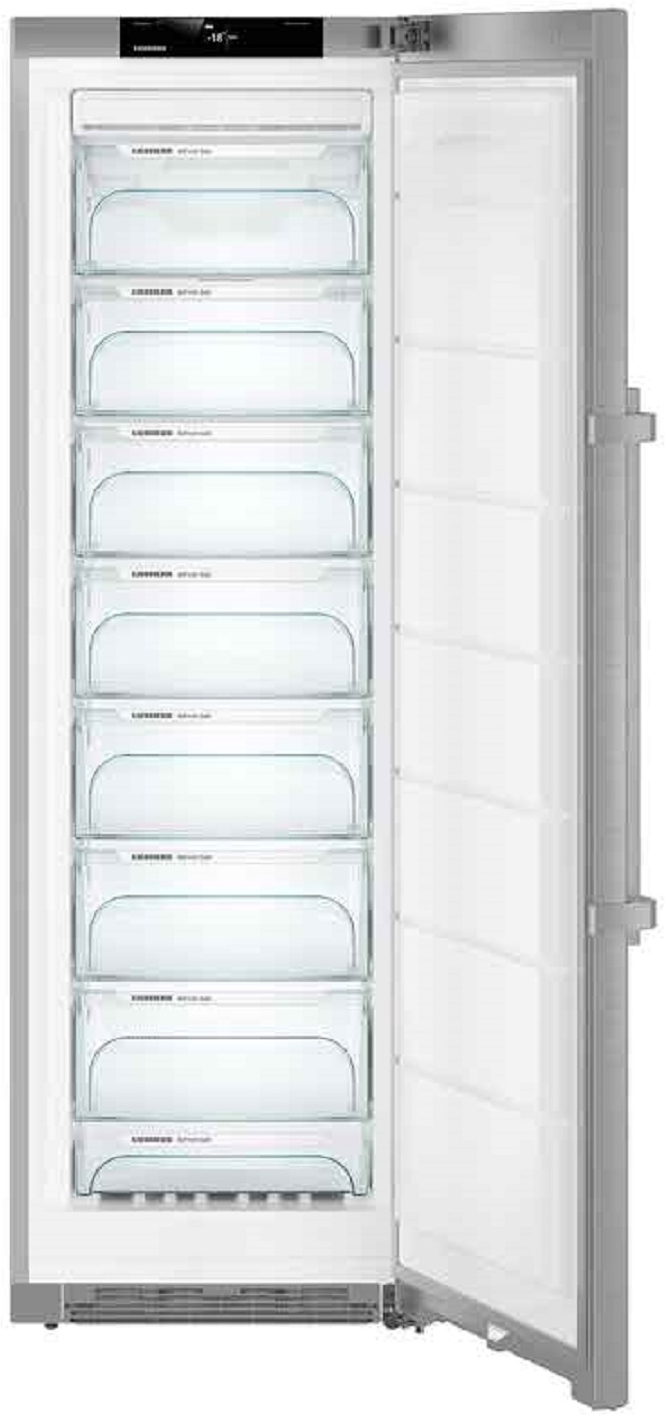 Liebherr SGNPef 4315. Tipo: Vertical. Congelador, capacidad neta: 268 L, Clase climática: SN-T, Capacidad de congelación: 18 kg/24h, Tiempo de almacenamiento en caso de fallo de alimentación: 20 h, Nivel de ruido: 38 dB, Índice Star: 4*, Sistema de descongelado. Bisagra para puerta: Derecho. Tipo de lámpara: LED. Clase de eficiencia de energía: A+++, Consumo de energía anual: 168 kWh. Color del producto: Plata