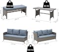 Dale un toque de elegancia y funcionalidad a tu jardín con nuestro bonito conjunto de muebles de ratán para salones de exterior. Este set se compone de un gran sofá esquinero, una mesa y un banco. Se pueden utilizar tanto como para relajarse como para reunirse a cenar con amigos. No lo pienses más y empieza a disfrutar ya de este fantástico conjunto de muebles de ratán para salones de exterior. Características - Conjunto de muebles de jardín de ratán - Incluye un sofá grande esquinero, una mesa y un banco - Fabricado con ratán apto para exteriores - Se incluyen los cojines para mayor comodidad - Cojines lavables - La mesa tiene altura suficiente como parara utilizarla como mesa de comedor exterior junto al banco - El juego de sofás se conecta mediante hebillas para que no se meva - Requiere Montaje Especificaciones - Color del Ratán: Gris Mixto - Color de los Cojines: Gris - Materiales: Ratán de PE, Hierro, Algodón - Medidas del sofá, de un lado: 172x67x74 cm (LxANxAL) y del otro lado: 182x67x74 cm (LxANxAL) - Medidas del banco: 100x40x42 cm (LxANxAL) - Altura de los asientos (desde el suelo): 35cm - Medidas de la mesa: 140x70x65 cm (LxANxAL) - Peso máximo que soportan: Sofa (390kg), Mesa (80kg), Banco (320kg) - Peso Neto:65kg - Referencia: 860-109