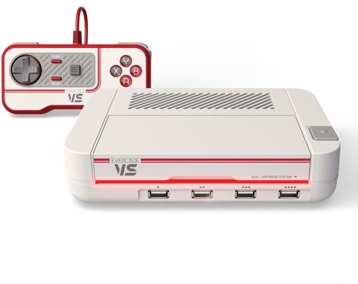 Evercade VS amplía las posibilidades de los juegos retro en su sala de estar, el VS incluye 2 ranuras para cartuchos Evercade y 4 puertos de controlador USB para memorables juegos multijugador de la vieja escuela.