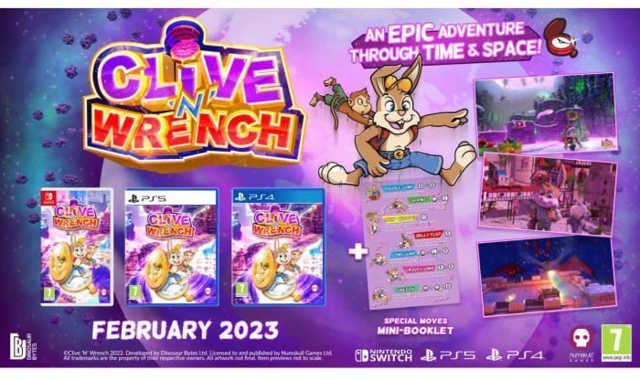 Clive 'N' Wrench es un juego de plataformas en 3D centrado en Clive el conejo y Wrench, su compañero simio colgando de su espalda.