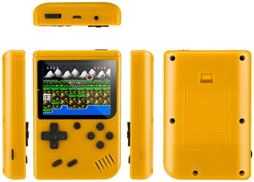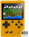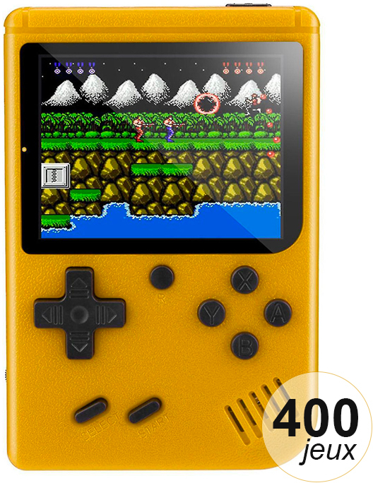 La consola de juegos Rétro amarilla os permitirá a ti y a tu hijo revivir los juegos legendarios que marcaron vuestra infancia. Cuenta con casi 400 juegos clásicos, entre ellos Mario, Street Fighter y Bomberman. Su batería recargable de 1020 mAh dura unas 7 horas. Su pantalla HD en color de 2,4 pulgadas ofrece unos gráficos óptimos.Características y Puntos fuertes: 400 número de juegos incluidosRecarga mediante cable micro USB (incluido)Pantalla HD en color de 2,4 pulgadas con reproducción óptima de gráficosExcelente autonomía: 7 horas
