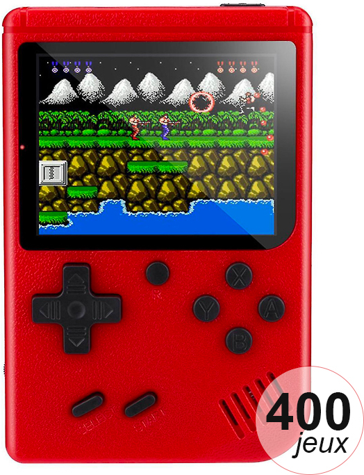 La consola de juegos Rétro roja os permitirá a ti y a tu hijo revivir los juegos legendarios que marcaron vuestra infancia. Cuenta con casi 400 juegos clásicos, entre ellos Mario, Street Fighter y Bomberman. Su batería recargable de 1020 mAh dura unas 7 horas. Su pantalla HD en color de 2,4 pulgadas ofrece unos gráficos óptimos.Características y Puntos fuertes: 400 número de juegos incluidosRecarga mediante cable micro USB (incluido)Pantalla HD en color de 2,4 pulgadas con reproducción óptima de gráficosExcelente autonomía: 7 horas