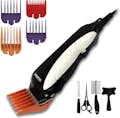 Especialmente diseñado para su uso en pelo de animales. Mango ergonómico e interruptor al alcance del dedo mientras se usa. 4 accesorios guía de púas de distintas formas con colores identificativos. Cuenta con un protector de cuchillas y maletín de almacenamiento para los accesorios. Incluye maletin con: Lima de uñas, tijeras, cepillo y peine. Potencia 12 W.