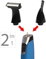 SÉ TU IMAGEN en el rostro y el cuerpo, el cortapelos te ayuda a conseguir un aspecto cuidado con una depilación suave y precisa sin irritar la piel. DOS CABEZALES INTERCAMBIABLES: cabezal de afeitado (36 mm de ancho) para un afeitado suave de cuerpo completo con cuatro peines, cabezal de afeitado para depilación de nariz y orejas. CARCASA IMPERMEABLE (IPX5), el dispositivo incluye cuatro peines con longitudes