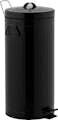 Papelera redonda de pedal con cubo. Capacidad 30L. Modelo BROOKLYN en acero inoxidable. Color: Negro. Dimensión: Ø 30 x A 69 cm. Peso: 3kg. Cuerpo y tapa de acero inoxidable (0,4 mm). Estilo industrial.Incluye: Un cubo extraíble con asa para sujetar la bolsa de basura, y un anillo de suelo para proteger los suelos frágiles..Papelera con pedal manual. Materiales resistentes. Mecanismo de pedal sólido. Muy fácil de usar. Cierre insonorizado y resistente a los olores. Silenciosa gracias a su amortiguador y a su sistema de cierre lento. Fácil de abrir gracias a su gran pedal. Calidad profesional. Acabado de alta calidad. Fácil de trasladar gracias a su fuerte asa de transporte. Fácil de limpiar gracias al cubo de plástico de su interior. .Práctico e higiénico. Sus materiales lisos (acero inoxidable no corrosivo) facilitan su limpieza..Más que una papelera, un mueble de diseño. No es necesario agacharse para tirar los residuos. Cubo de basura estable. Base antideslizante. Cierre silencioso y antihuellas. Esta papelera lo tiene todo. No hace falta esconderlo en un rincón: conviértalo en parte integrante de su decoración. Ideal para la cocina, el baño, la oficina, el lavadero y cualquier otro lugar concurrido en el que se necesite una papelera. Aspecto moderno y elegante. Estilo industrial.