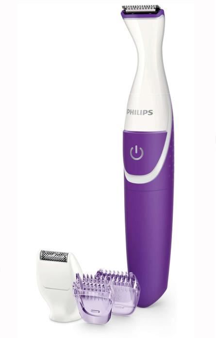 PHILIPS BRT38/15 Recortadora de bikini 3 en 1 - 1 cabezal recortador de bikini, 2 peines recortadores (3 y 5 mm), 1 cabezal de afeitado, estuche de transporte - 100 % resistente al agua - Púrpura