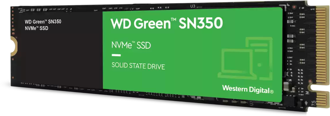 Western Digital Green SN350. SDD, capacidad: 480 GB, Factor de forma de disco SSD: M.2, Velocidad de lectura: 2400 MB/s, Velocidad de escritura: 1650 MB/s, Velocidad de transferencia de datos: 8 Gbit/s