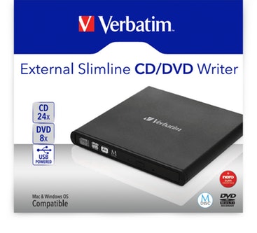 Cada vez más proveedores de computadoras portátiles deciden no incluir unidades ópticas en sus productos, en favor de diseños más delgados. Sin embargo, los CD y los DVD siguen siendo uno de los tipos de medios más usados. Verbatim tiene la solución con la grabadora externa de CD/DVD Slimline.\n\nEste pequeño dispositivo es lo que necesita si tiene una computadora portátil, ultrabook o netbook. Úsela para instalar su software o realizar copias de seguridad. La grabadora externa de CD/DVD Slimline Verbatim recibe alimentación por USB, por lo que no se necesita un adaptador de alimentación. Es apenas más grande que un DVD y cabe en su bolsillo. ¡Nunca deberá ir a ningún lugar sin ella!\n\nLa unidad incluye el software Nero Burn and Archive, que posee varias funciones especiales, entre ellas DiscSpan, MediaHome y la tecnología SecureDisc, para ayudarle a organizar, grabar y archivar correctamente sus archivos importantes. \n\n*El software Nero Burn & Archive es compatible solo con PC
