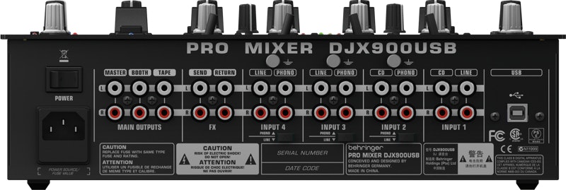 Behringer DJX900USB. Cantidad de canales: 5 canales. Ancho: 320 mm, Profundidad: 370 mm, Altura: 107 mm