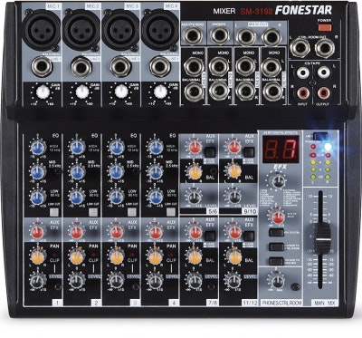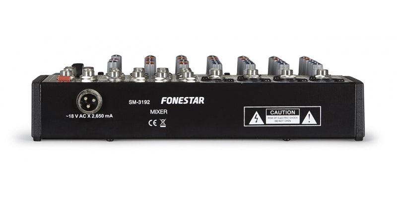 Fonestar SM-3192. Cantidad de canales: 12 canales, Rango de frecuencia: 20 - 20000 Hz. Auriculares: 6,3 mm. alimentación fantasma: 48 V, Consumo de energía: 650 mA. Ancho: 272 mm, Profundidad: 259 mm, Altura: 41 mm
