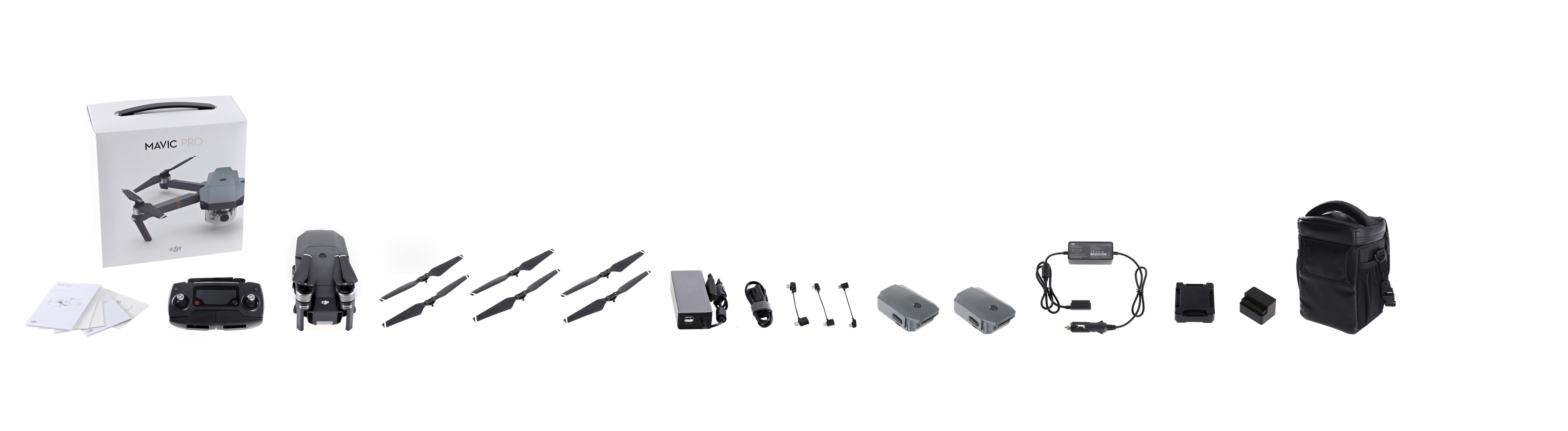 DJI Mavic Pro Flying More Combo. Número de rotores: 4 rotores. Megapixeles: 12,35 MP, Máxima resolución de video: 4096 x 2160 Pixeles. Velocidad máxima: 18 m/s, Distancia de funcionamiento máximo: 7000 m. Funciones de control del movimiento: Hacia atrás, Descendente, Adelante, Giro a la izquierda, Giro a la derecha, Ascendente. Tecnología de batería: Polímero de litio, Capacidad de batería: 3830 mAh. Tarjetas de memoria compatibles: MicroSD (TransFlash). Compatibilidad con GPS, GLONASS, Wifi. Potencia de adaptador AC: 50 W. Color del producto: Gris, Plata