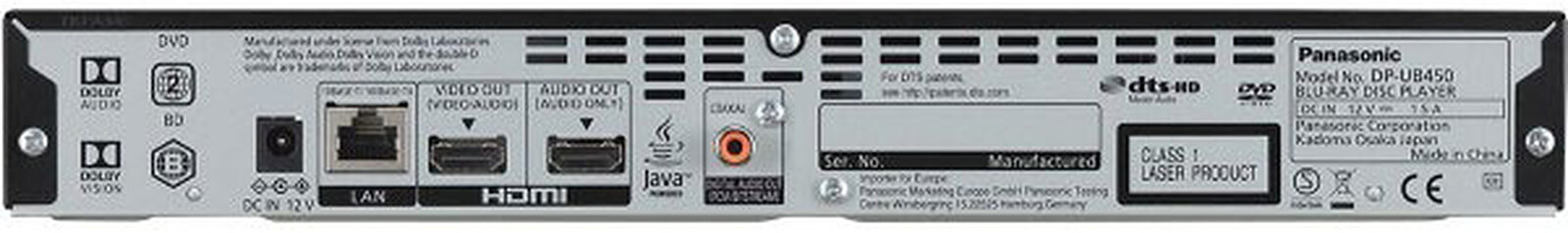 Panasonic DP-UB450EG-K Carta de Blu-Ray 4K Ultra HD USB Dolb