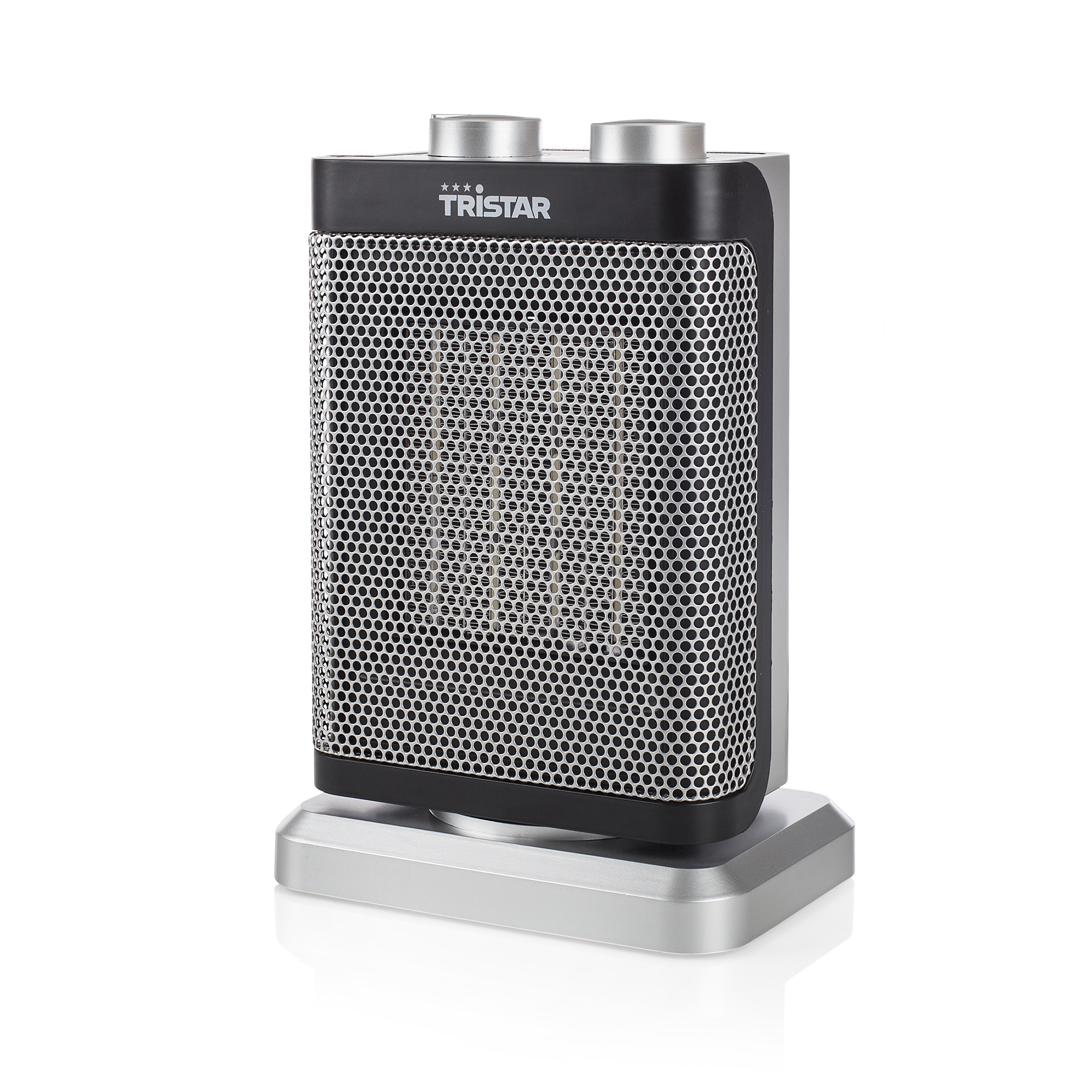 Calefactor cerámico eléctrico Tristar KA-5065 – 3 niveles de potencia – Oscilante\nEl calefactor cerámico eléctrico Tristar KA-5065 es el calefactor ideal para ir de camping. Utilícelo en la caravana o debajo del toldo. Ya no volverá a pasar frío gracias a sus 3 programas ajustables y a sus 1500 W de potencia máxima. El ventilador se puede utilizar con total seguridad gracias a su protección contra sobrecalentamiento y protección antivuelco.\n\nSiempre a la temperatura adecuada\nEl calefactor está equipado con un ventilador que emite aire frío y caliente. Además, el calefactor incluye un termostato ajustable que garantiza que siempre tenga la temperatura adecuada dentro de su caravana o autocaravana. Simplemente con el ventilador, puede utilizar el calefactor para refrescar.\n\nSeguro de usar\nGracias a su protección antivuelco, si se cae de manera accidental, se apaga. La protección contra sobrecalentamiento apaga el calefactor con ventilador eléctrico Tristar cuando se calienta demasiado. Por lo tanto, este calefactor es muy seguro de usar.\n\nTristar le ofrece 24 meses de garantía en todos los productos.\n\nContenido de la caja:\nCalefactor con ventilador eléctrico Tristar, manual de instrucciones\n\nRazones para escoger el calefactor eléctrico Tristar:\nFácil de utilizar gracias a sus dos diales giratorios.\nTermostato ajustable y dos niveles de potencia de 1000 y 1500 W para calentar a la perfección habitaciones pequeñas.\nEquipado con protección contra sobrecalentamiento y antivuelco que garantizan su uso seguro.\nPuede calentar en invierno y refrescar en verano gracias al modo ventilador.\nFácil de almacenar gracias a su tamaño compacto de 11,4 x 16,6 x 24,3 cm.