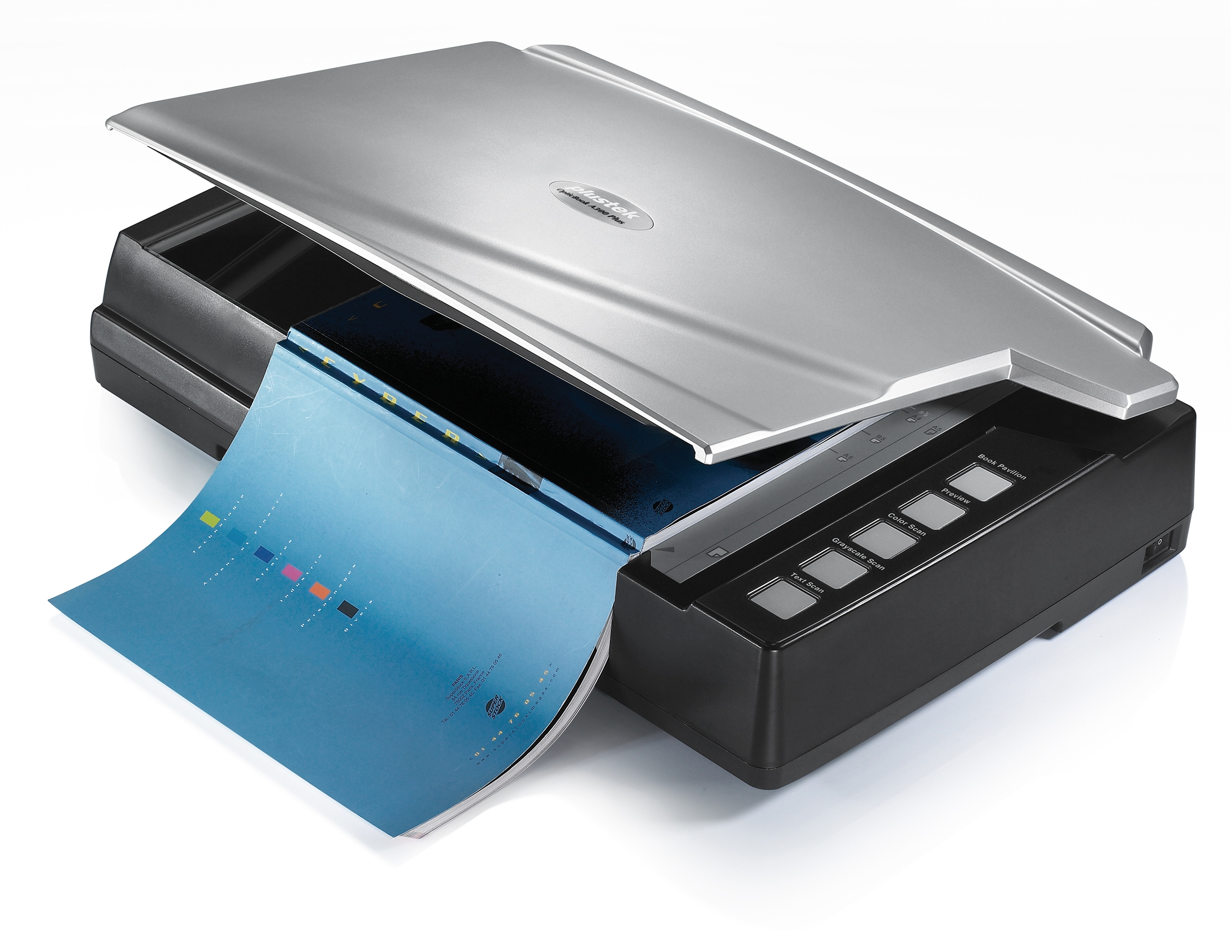 Plustek OpticBook A300 Plus. Tamaño máximo de escaneado: 304,8 x 431,8 mm, Resolución óptica de escáner: 600 x 600 DPI, Profundidad de entrada de color: 48 bit. Tipo de escaneado: Escáner de cama plana, Color del producto: Negro, Plata. Tipo de sensor: CCD, Ciclo de trabajo diario (max): 5000 páginas, Fuentes de luz: LED. Interfaz estándar: USB 2.0. Tipo de fuente de alimentación: CC, Consumo energético: 24 W, Consumo de energía (inactivo): 8 W