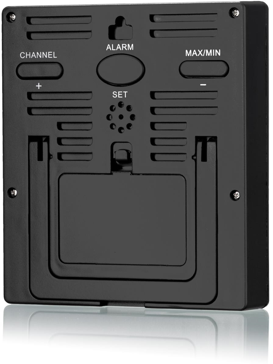El termómetro e higrómetro Temeo Higro Quadro ofrece la posibilidad de medir la temperatura y la humedad en 4 puntos distintos tanto dentro como fuera de casa. Esto permite controlar de forma sencilla cada lugar: ¿Es mi cuarto muy húmedo? ¿Está a buena temperatura la habitación del bebé? ¿Hace mucho calor en la terraza?, entre muchas otras posibilidades de medida seleccionables. Los tres sensores suministran los datos a la estación receptora por señal radio de 433 MHz y al mismo tiempo, la estación receptora mide también la temperatura y la humedad ambiental. Se necesitan 3x Pilas AAA / LR03 (para la unidad principal) y 2x Pilas AAA / LR03 (para los sensores). Características: 4 espacios de medida para temperatura y humedad Frecuencia de transferencia de 433 MHz Los sensores son a prueba de salpicaduras, para su uso en exterior 3 Sensores Termo/higro