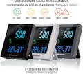 El medidor de calidad del aire C02 Smile es un equipo multifuncional para detectar la concentracion de dioxido de carbono, la temperatura y humedad del espacio en el que se ubica para saber cuando actuar y ventilar el espacio. Cuenta con pantalla LED a color con numeros extra grandes y un indicador grafico del nivel actual de CO2. Se puede configurar facilmente una alarma de concentracion de dioxido de carbono para que nos avise cuando la cantidad de CO2 en el ambiente cambie a niveles no adecuados y ventilar la estancia y evitar la concentracion de gases, virus, bacterias, o patogenos en general y asegurar la calidad del aire..Es valido para tener un control de la ventilacion en la situacion de la pandemia producida por el coronavirus SARS-CoV-2, responsable de la covid-19..CARACTERiSTICAS:.Visualizacion simultanea de la concentracion de dioxido de carbono CO2, temperatura y humedad para la deteccion rapida de la calidad del aire..Pantalla LED a color. Sencilla e intuitiva..Indicador grafico de la concentracion actual de CO2.Alta precision, alta resolucion y respuesta rapida..Alarma para la concentracion de dioxido de carbono CO2..El dispositivo funciona con adaptador de red (incluido)..DATOS TeCNICOS GENERALES:.Tiempo de respuesta: Cada 15 segundos..Medicion de CO2: Sensor NDIR de larga duracion 400-5000ppm.Precision de la medicion: ? 50 PPM ?5%.Resolucion del CO2: 1 PPM.Rango de medicion de la temperatura: 0? a +50?C (32?C a 122?F).Resolucion de la temperatura: 0,1?C.Resolucion de la humedad: 1%.Temperatura de funcionamiento: 0? a +50?C (32?C a 122?F).PESOS Y MEDIDAS:.Largo: 110 mm.Ancho: 33 mm.Alto: 123 mm.Peso: 200 g