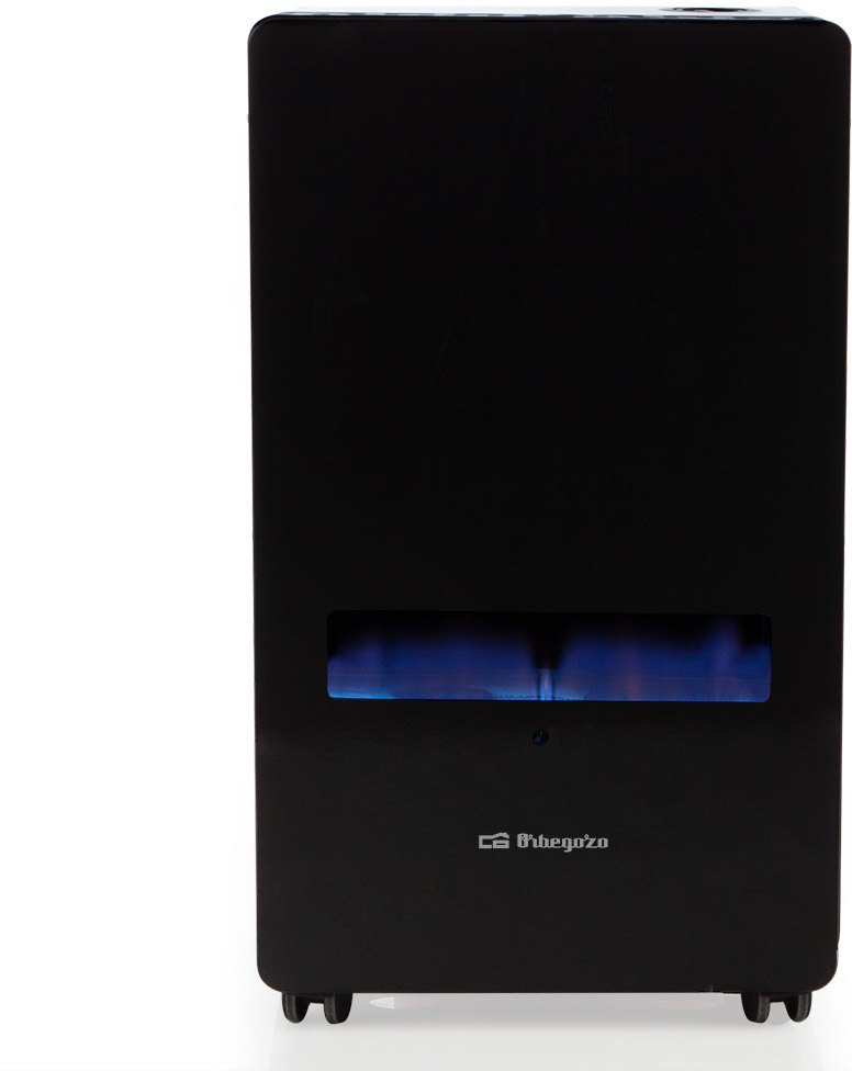 Estufa de gas llama azul Orbegozo fabricada con un atractivo frontal de cristal templado que le proporciona un toque distintivo, moderno y elegante a todo un clásico de calefacción.\nLa estufa llama azul está catalogada como clase energética A. Esto asegura que tengas un mayor ahorro; el consumo de gas para lograr el mismo nivel de calor es claramente inferior a otros dispositivos. Consigues los mismos resultados con menos dinero.\nAsimismo, el calor que emite nuestra estufa de llama azul alcanza mayor amplitud en metros cuadrados. Su potencia puede llegar hasta los 3800 W, proporcionando un calor envolvente y confortable en toda la estancia. Es decir, en poco tiempo convierte el aire frío en una zona de equilibrada calidez.\nCuando desees abandonar un ambiente puedes trasladar la estufa llama azul donde vayas. Tiene asa de transporte y ruedas pivotantes que facilitan el movimiento.\nLa estufa llama azul utiliza el oxígeno exterior para convertir en calor; por lo tanto, no se aconseja en lugares muy pequeños sin ventilación.\nNuestras estufas de gas disponen de un triple sistema de seguridad: 1. Encendido piezoeléctrico, la estufa se enciende de forma segura a través de su pulsador. 2. Al detectar algún fallo en la llama, la estufa se desconecta automáticamente. 3. También es capaz de analizar la cantidad de gases concentrados en el ambiente; si detecta un nivel mayor al permitido el analizador atmosférico corta el suministro de gas hacia la estufa.\nLa vida útil de esta estufa es más larga que otros sistemas de calefacción del mercado. Si piensas en una buena inversión, la estufa de llama azul debe estar en tu lista. Disfrutarás de un producto seguro, práctico y económico durante mucho tiempo.