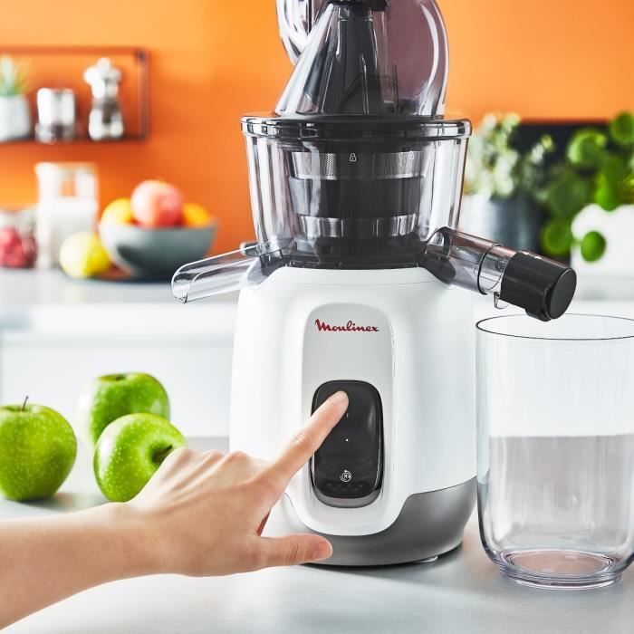 MOULINEX ZU600110 Ultra Juice Extractor de jugo en frío - 2 filtros de botella de 600 ml - Pico extra ancho de 85 mm - Programa automático - Para jugos caseros ricos en vitamina C - Blanco hielo