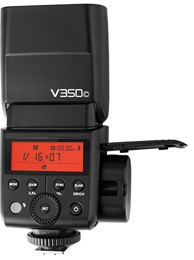 Godox V350C. Tipo: Flash compacto, Color del producto: Negro, Tiempo apróximado de reciclaje: 1,7 s. Tipo de fuente de alimentación: Batería, Tipo de batería: Batería integrada, Voltaje de entrada: 7.2 V. Ancho: 62 mm, Profundidad: 150 mm, Altura: 38 mm