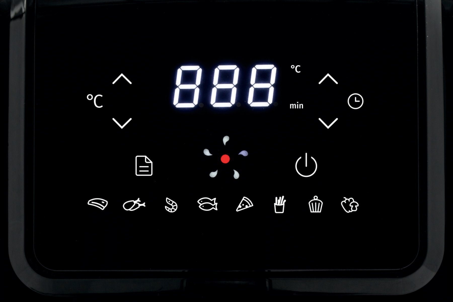 Gorenje AF1700DB. Tipo de producto: Freidora de aire caliente, Capacidad: 5 L, Temperatura (min): 80 °C. Tipo de construcción: Sencillo, Color del producto: Negro, Metálico, Tipo de control: Tocar. Tipo de visualizador: LED. Potencia: 1700 W. Ancho: 291 mm, Profundidad: 335 mm, Altura: 365 mm
