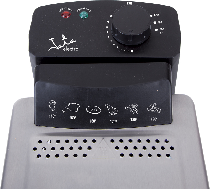 JATA FR678. Tipo de producto: Freidora, Capacidad: 3,2 L. Tipo de construcción: Sencillo, Color del producto: Acero inoxidable, Tipo de control: Botones. Potencia: 2000 W, Voltaje de entrada AC: 230 V