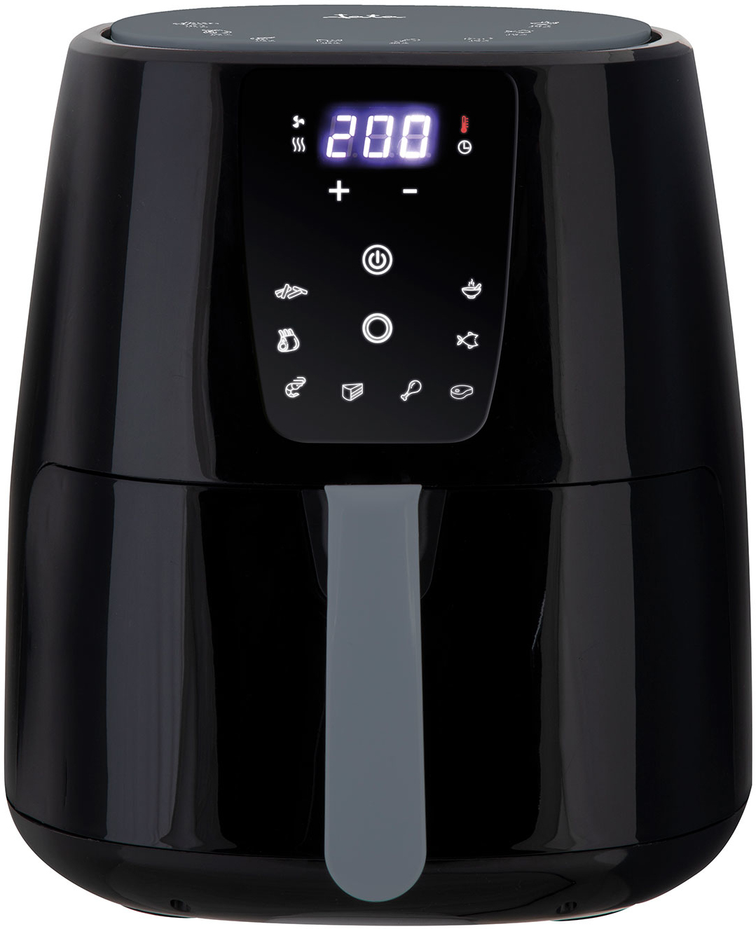 JATA JEFR1225. Tipo de producto: Freidora de aire caliente, Capacidad: 5 L, Temperatura (máx): 200 °C. Tipo de construcción: Sencillo, Color del producto: Negro, Tipo de control: Tocar. Potencia: 1300 W, Voltaje de entrada AC: 230 V