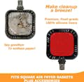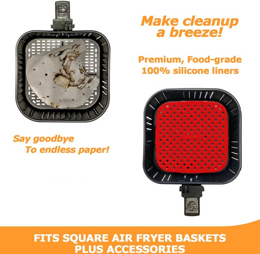 Alfombrillas de silicona reutilizables cuadradas (21,5cm) para tu airfryer. Reduce el uso de papel, protege la canasta del desgaste y permite una mejor lim